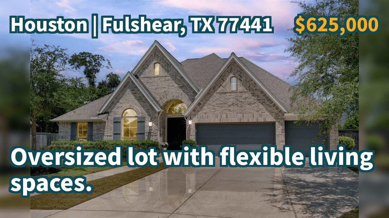 Fulshear, TX 77441 | $625,000 | 3,703 Sqft, 4 beds, 3 full and 1 half baths, Single-Family | Oversized lot with flexible living spaces.