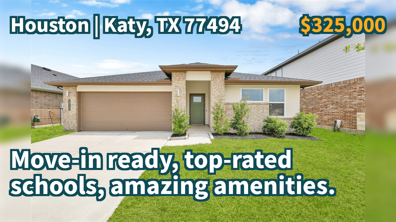 Welcome to this beautiful, move-in ready, single-family home in Katy, Texas 77494! Priced at $325,000, this newer construction (built in 2023) offers 1,820 square feet of comfortable living space with 4 bedrooms and 2 full bathrooms. Situated on a generous 6,000 square foot lot, this home boasts a modern elevation with coach lights and a spacious, covered patio perfect for outdoor enjoyment.