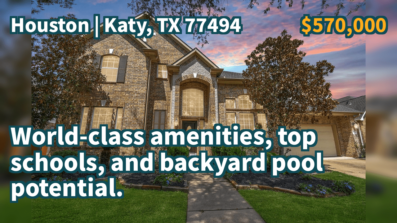 Katy, TX 77494 | $570,000 | 3,464 Sqft, 5 beds, 4 full baths, Single-Family | World-class amenities, top schools, and backyard pool potential.
