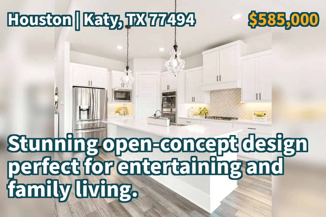 Katy, TX 77494 | $585,000 | 3,525 Sqft, 4 beds, 3 full and 1 half baths, Single-Family | Stunning open-concept design perfect for entertaining and family living.