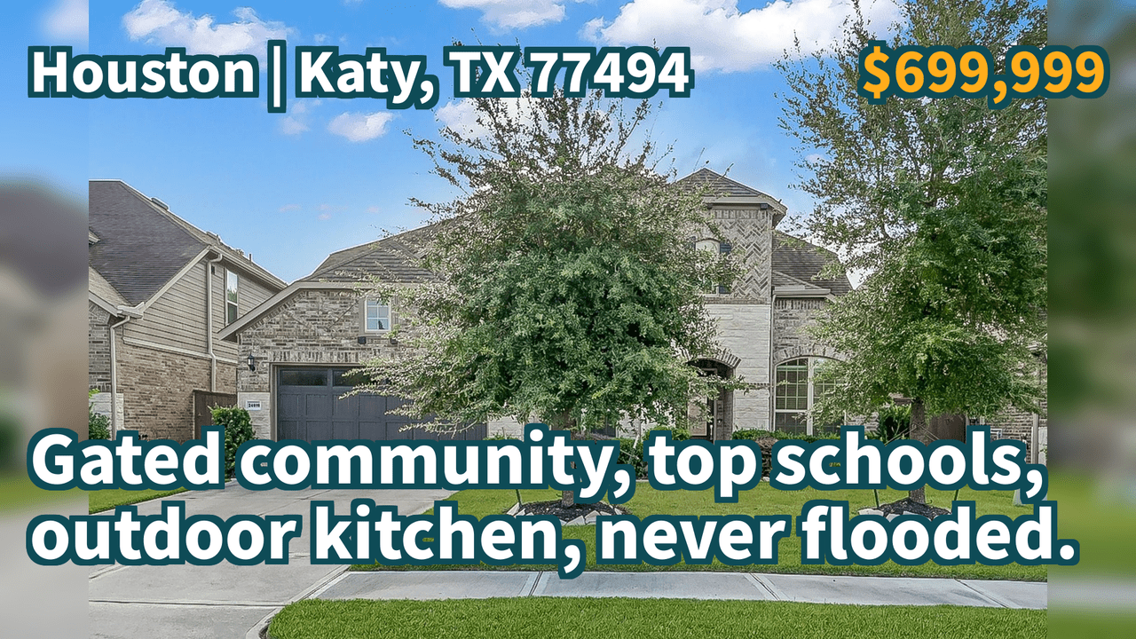 Katy, TX 77494 | $699,999 | 4,196 Sqft, 5 beds, 4 full baths, Single-Family | Gated community, top schools, outdoor kitchen, never flooded.