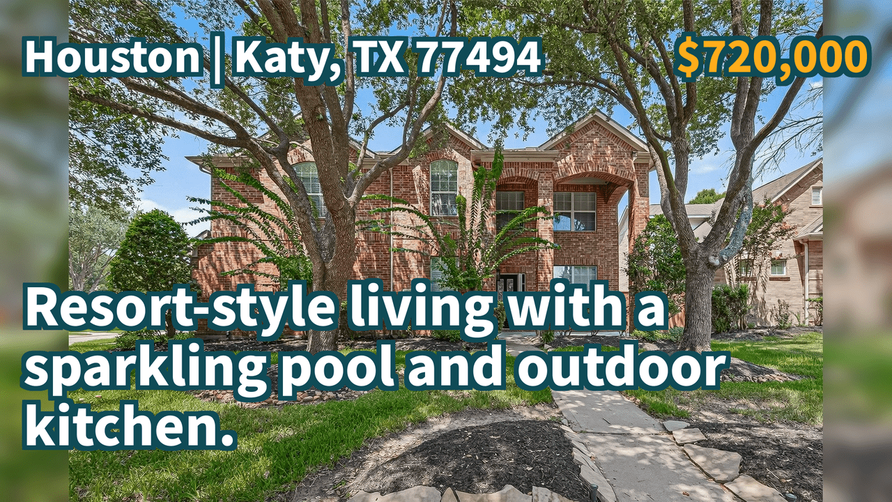 Katy, TX 77494 | $720,000 | 3,061 Sqft, 4 beds, 3 full and 1 half baths, Single-Family | Resort-style living with a sparkling pool and outdoor kitchen.