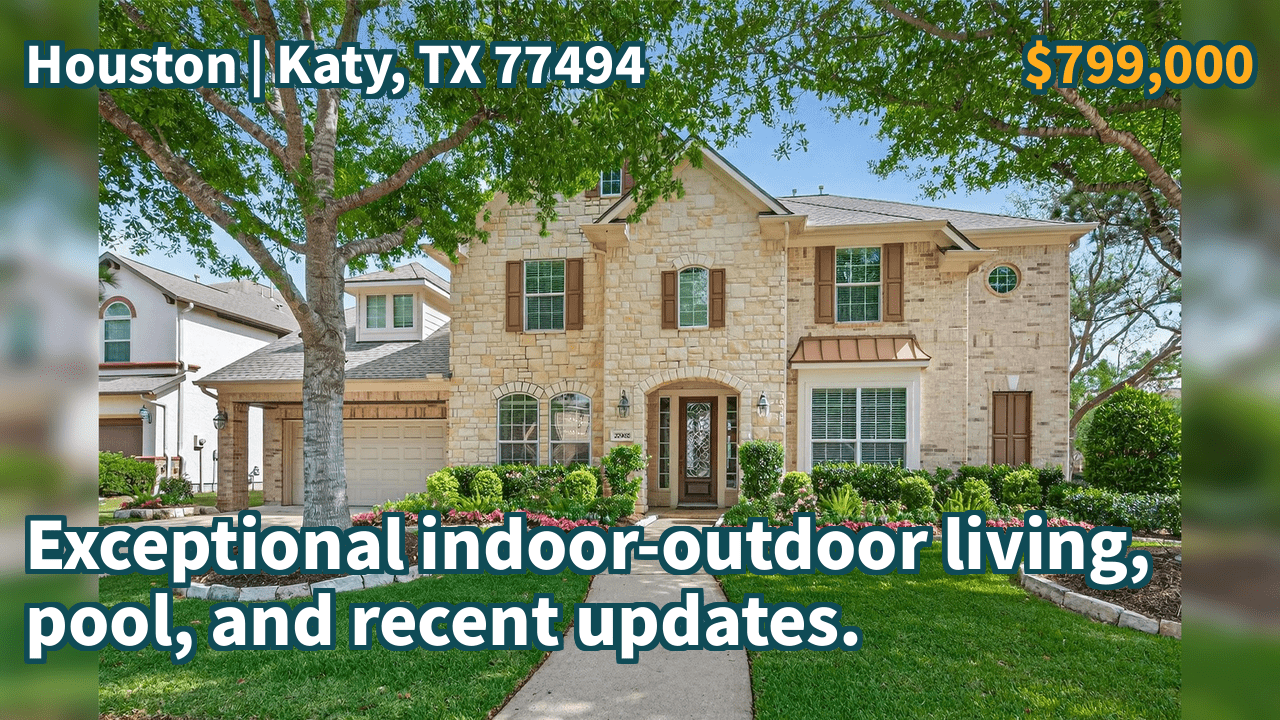 Katy, TX 77494 | $799,000 | 4,003 Sqft, 4 beds, 3 full and 1 half baths, Single-Family | Exceptional indoor-outdoor living, pool, and recent updates.