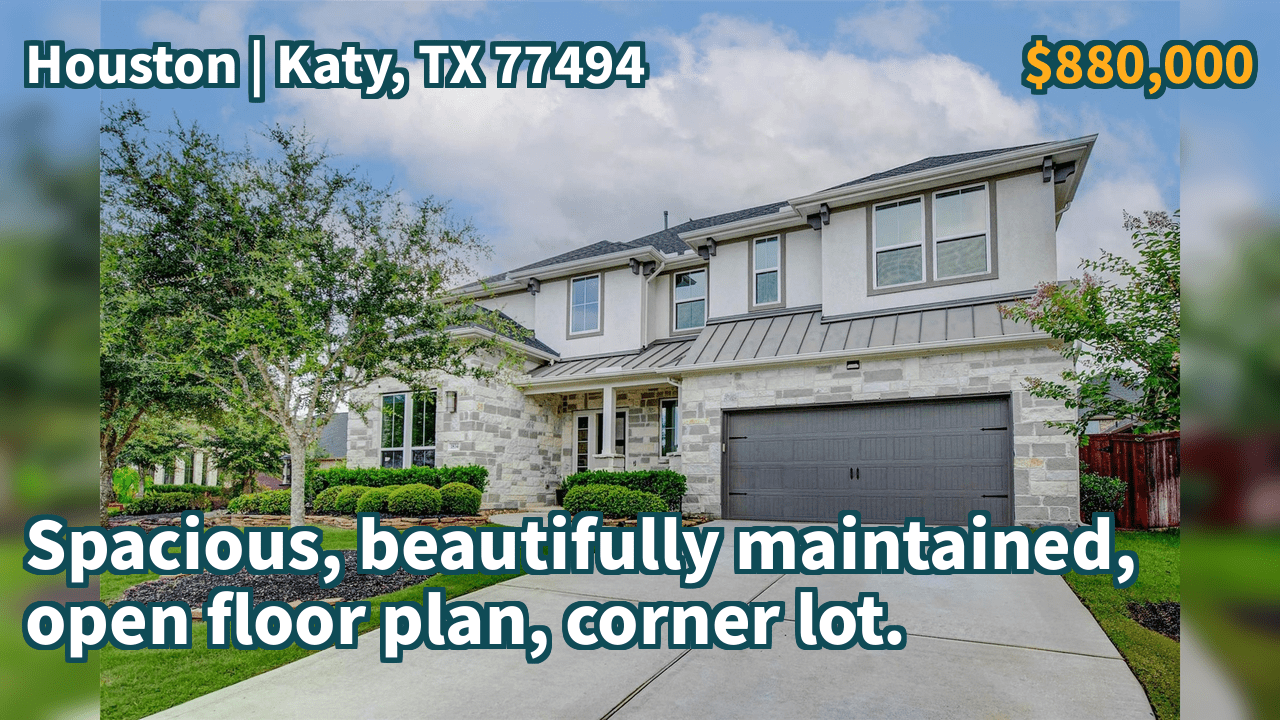 Welcome to this immaculately maintained single-family home, ideally situated on a corner lot within the desirable Grayson Woods community of Katy, TX 77494. This impressive residence is currently listed for sale at $880,000 and boasts a spacious 4,196 square feet of living space, built in 2020 on an 8,657 square foot lot.